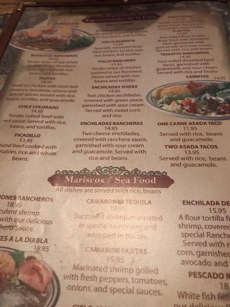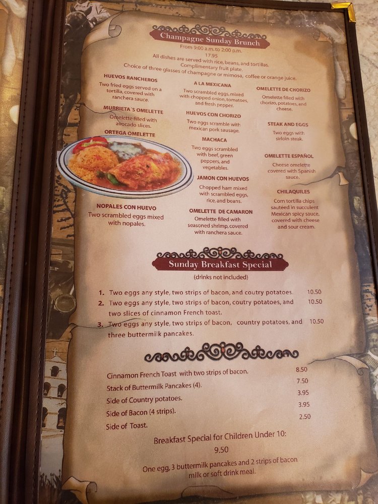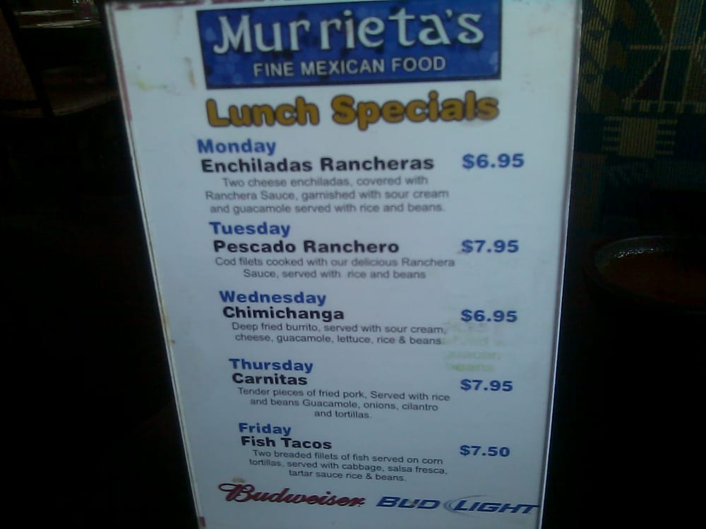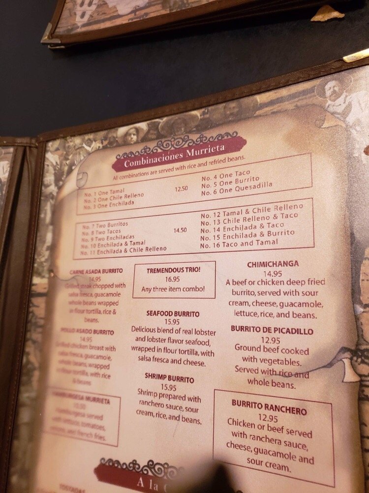 Murrieta's Mexican Restaurant Menu